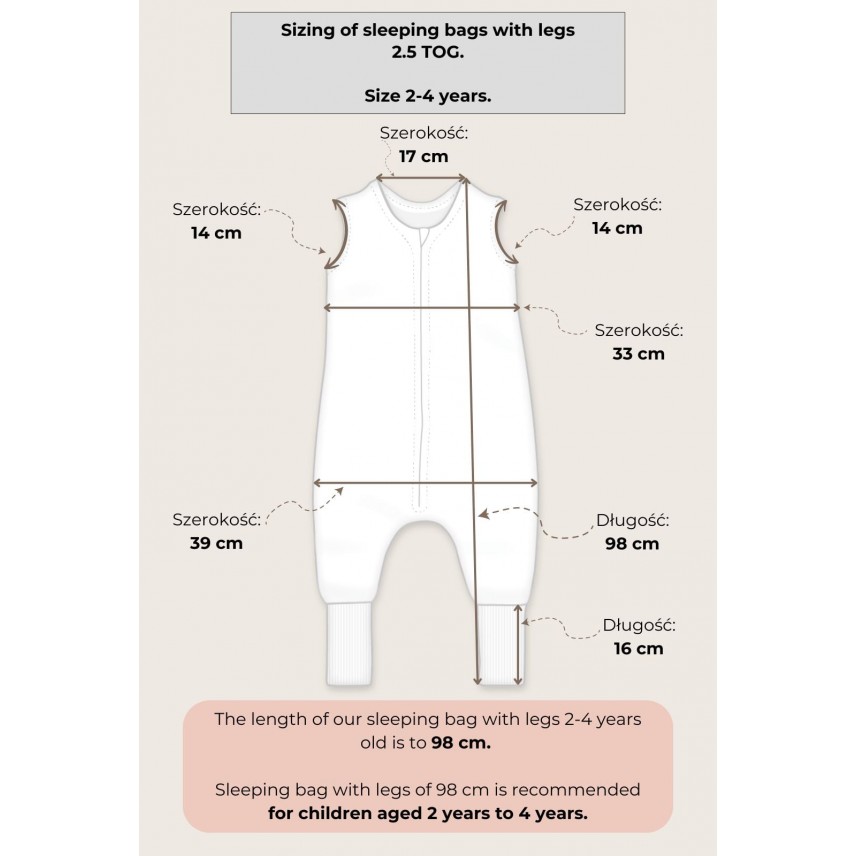 - Das einzigartige praktische Design und die Details wurden mit größter Sorgfalt ausgewählt. Mit Sorgfalt und größter Aufmerksamkeit haben wir die einzigartige Form unserer Schlafsäcke für Sie entwickelt und alle Extras ausgewählt. Wir haben darauf geachtet, die richtige Breite zu gewährleisten, damit Ihr Kleines sich so wohlfühlt wie in einem Schlafsack und gleichzeitig Freiheit für die Füße hat. Wir haben einen praktischen Reißverschluss hinzugefügt, der kein schädliches Nickel enthält.