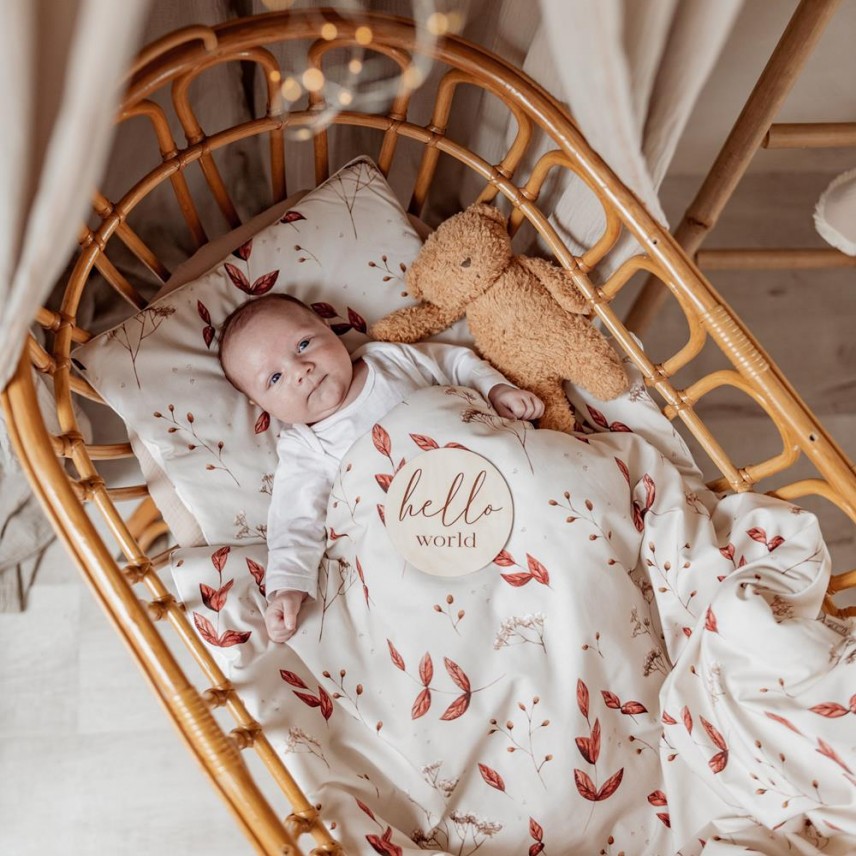 Ein angenehm zu berührendes, warmes und gleichzeitig luftiges Set aus Babybettwäsche. Hergestellt aus hochwertiger Baumwolle.
