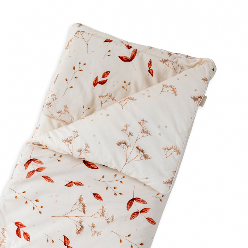 Das Set umfasst eine Decke und ein Kissen mit Füllung. Das Kissen ist flach, um die natürliche Entwicklung des Skelettsystems des Babys nicht zu stören. Auf unserem Baumwollkissen kann das Kind leicht die für sich bequemste Position einnehmen.