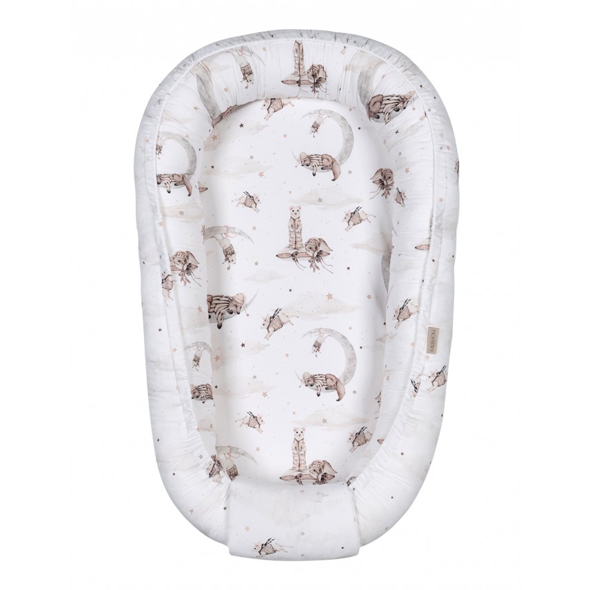 Das Nest hat eine abnehmbare Matratze aus Polyurethan-Schaum, die mit einem sicheren, verdeckten Reißverschluss geschlossen ist. Dank des abnehmbaren Einsatzes kann das Ganze problemlos in die Waschmaschine gelegt und gewaschen werden. Die Seiten des Kokons sind mit einer flexiblen, antiallergischen Silikon-Kugel gefüllt, die sich während der Nutzung und Pflege nicht verformt.