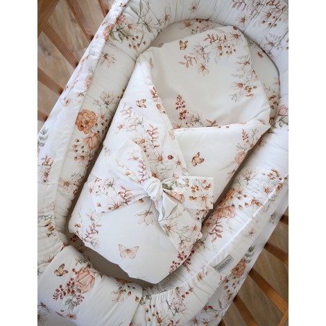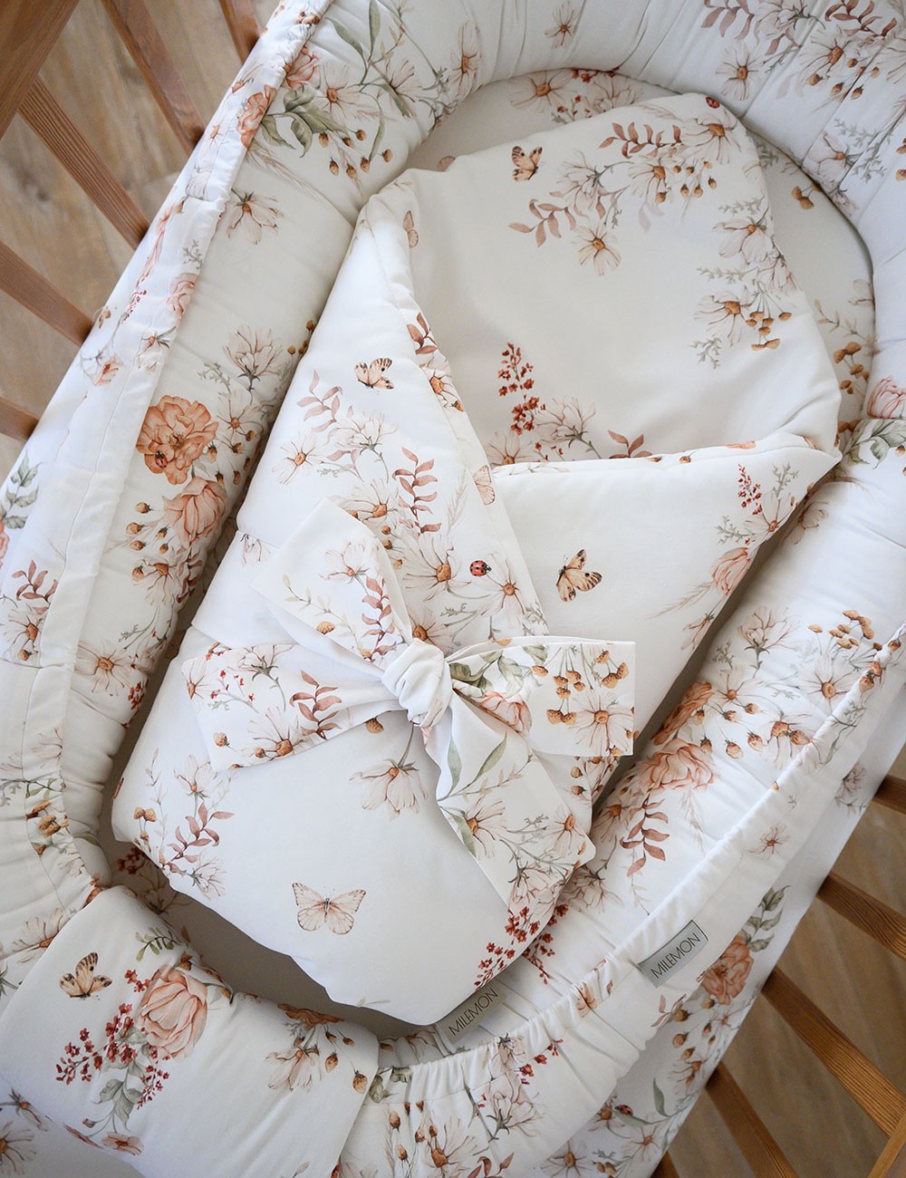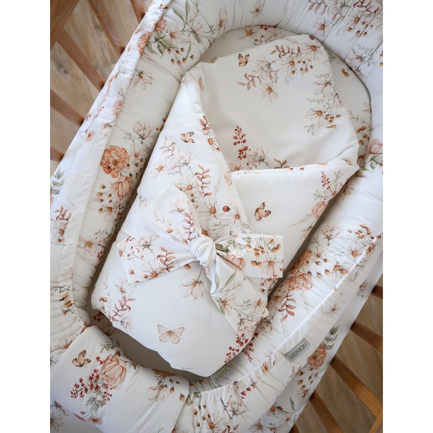 Der Wickel hat keine zusätzlichen Bänder oder Klettverschlüsse. Er ist so gestaltet, dass er nach dem Lösen der Schleife und dem Entfalten als Spielmatte für das Baby oder als eigenständige Decke für einen Kinderwagen oder eine Wiege verwendet werden kann. Dank dieser Lösung kann der Wickel weiterhin verwendet werden, auch wenn Ihr Kleines aus dem Wickeln herauswächst.