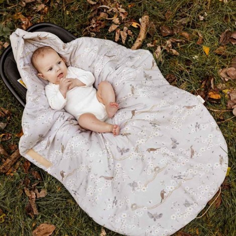 - Sie ist bequem und einfach anzubringen. Sie können sie schnell und mühelos auf den Sitz legen, was Ihnen Zeit spart. Ein zusätzlicher Vorteil ist, dass Sie Ihr Kleines zusammen mit der Decke aus dem Sitz nehmen können, damit es nicht aufwacht und kalt wird.