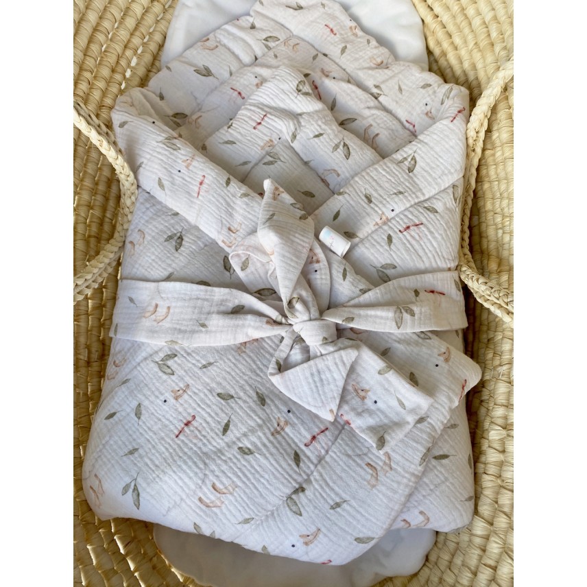 It is the softest and most delicate cone possible. The filling is fluffy, and thanks to the fact that there are no elements sewn on to the cone, such as Velcro or strings, when it no longer serves its purpose, it will become a wonderful quilt or play mat.