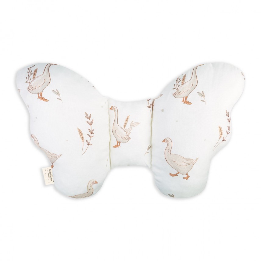 The high-quality certified filling in the butterfly pillow will ensure safety for babies’ skin and excellent support for the delicate head. The anti-shock butterfly pillow is filled with silicone down made from thin fibres formed into clusters of approximately 5mm in diameter. Each fibre is spirally twisted and has a hollow channel to ensure adequate air circulation and elasticity. This makes our butterfly pillow durable, resistant to distortion, bending and washing. It adapts perfectly to the shape of the head, provides optimal support and has anti-allergic properties.