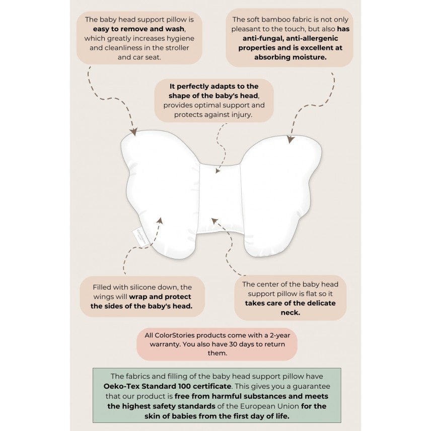 ColorStoriesButterfly-shaped bamboo anti-shock pillow for babies – the perfect support and protection for your little one’s head.