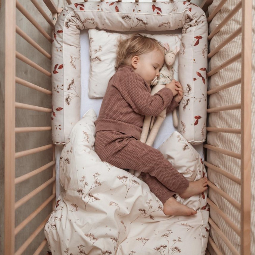The set includes a duvet and a pillow with filling. The pillow is flat so as not to disturb the natural development of the baby's skeletal system. On our cotton pillow, the child will easily assume the most comfortable position for themselves.