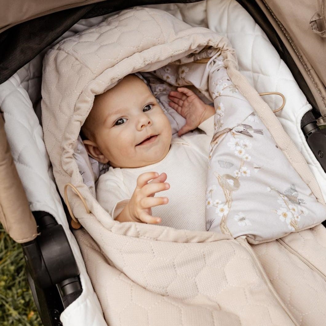 The footmuff to pram is an extremely practical product that is suitable in the pram, stroller and car seat. It can accompany you on any out-of-doors trip and will keep your baby softly and warmly swaddled no matter where you go or how you travel.