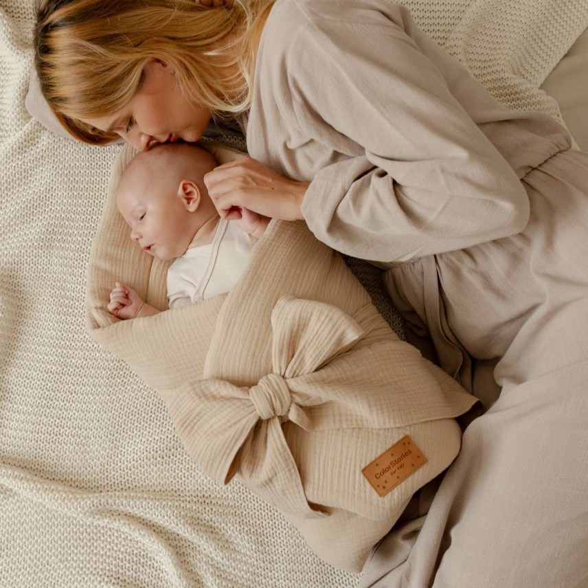 Every mum knows how important it is for a newborn to be provided with cosy warmth and a sense of security immediately after birth. The baby wrap is tied with a bow and fulfils this role perfectly! Thanks to this solution, you can adjust the wrapping to your little one’s needs. This will allow your little one to feel secure, which in turn contributes to a peaceful sleep.