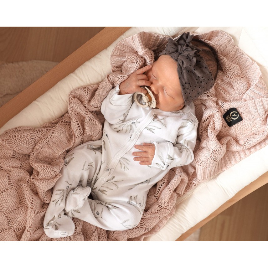 Le barboteuse bébé est composé à 100% de coton biologique certifié, sans danger pour la peau dès les premiers jours de la vie.