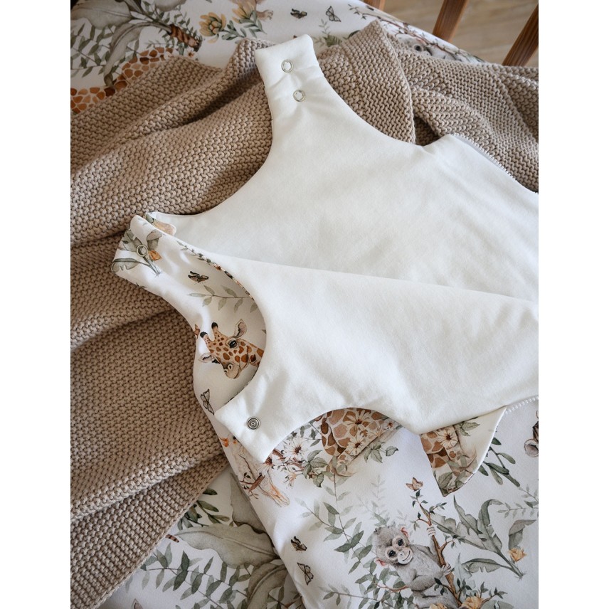 - La gigoteuse se fixe sur les épaules avec des boutons-pression confortables. Grâce au réglage en deux étapes, vous pouvez ajuster la gigoteuse à la bonne taille pour votre enfant.